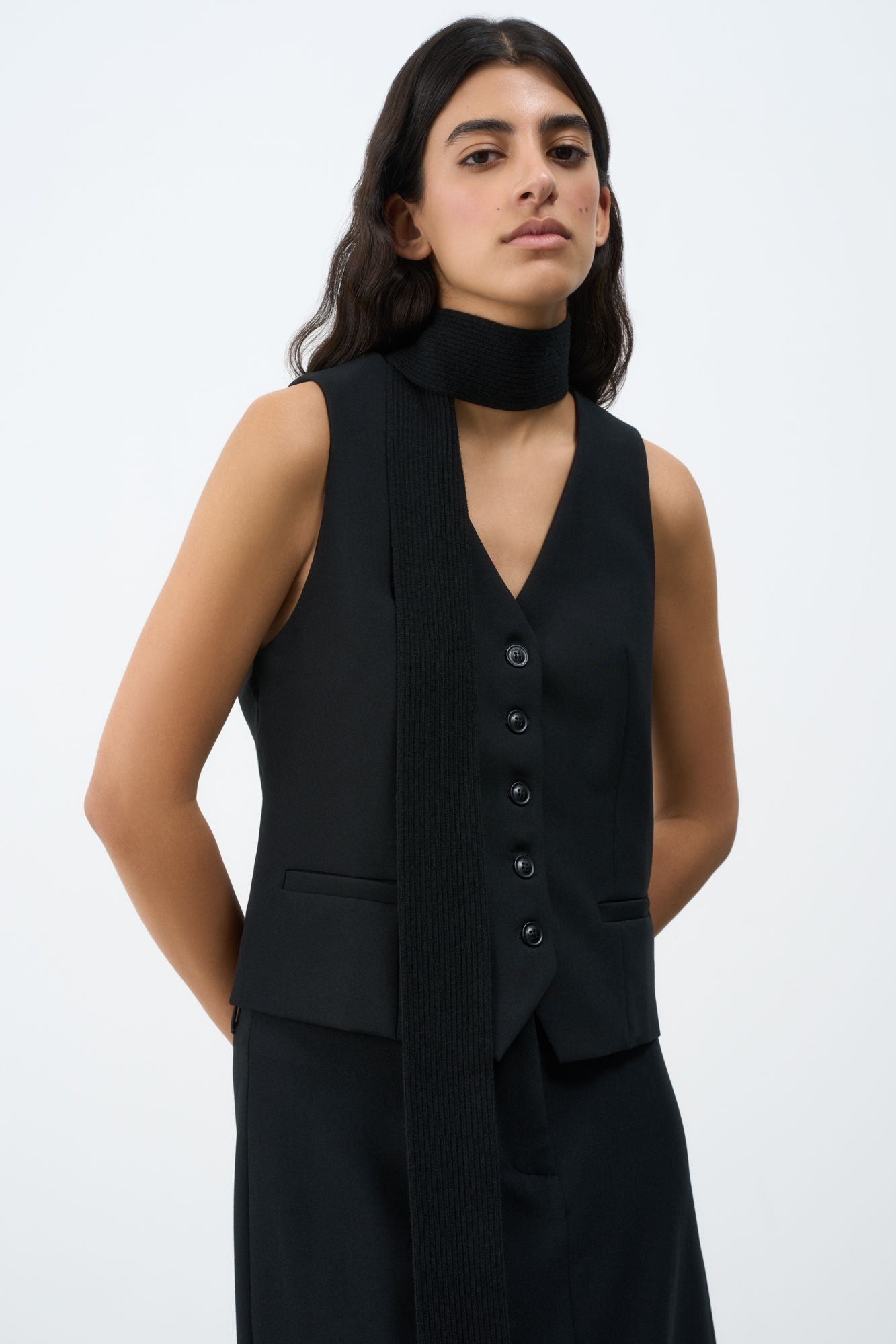Classic vest made of polyviscose with imitation pockets and a v-neck. Button closure.