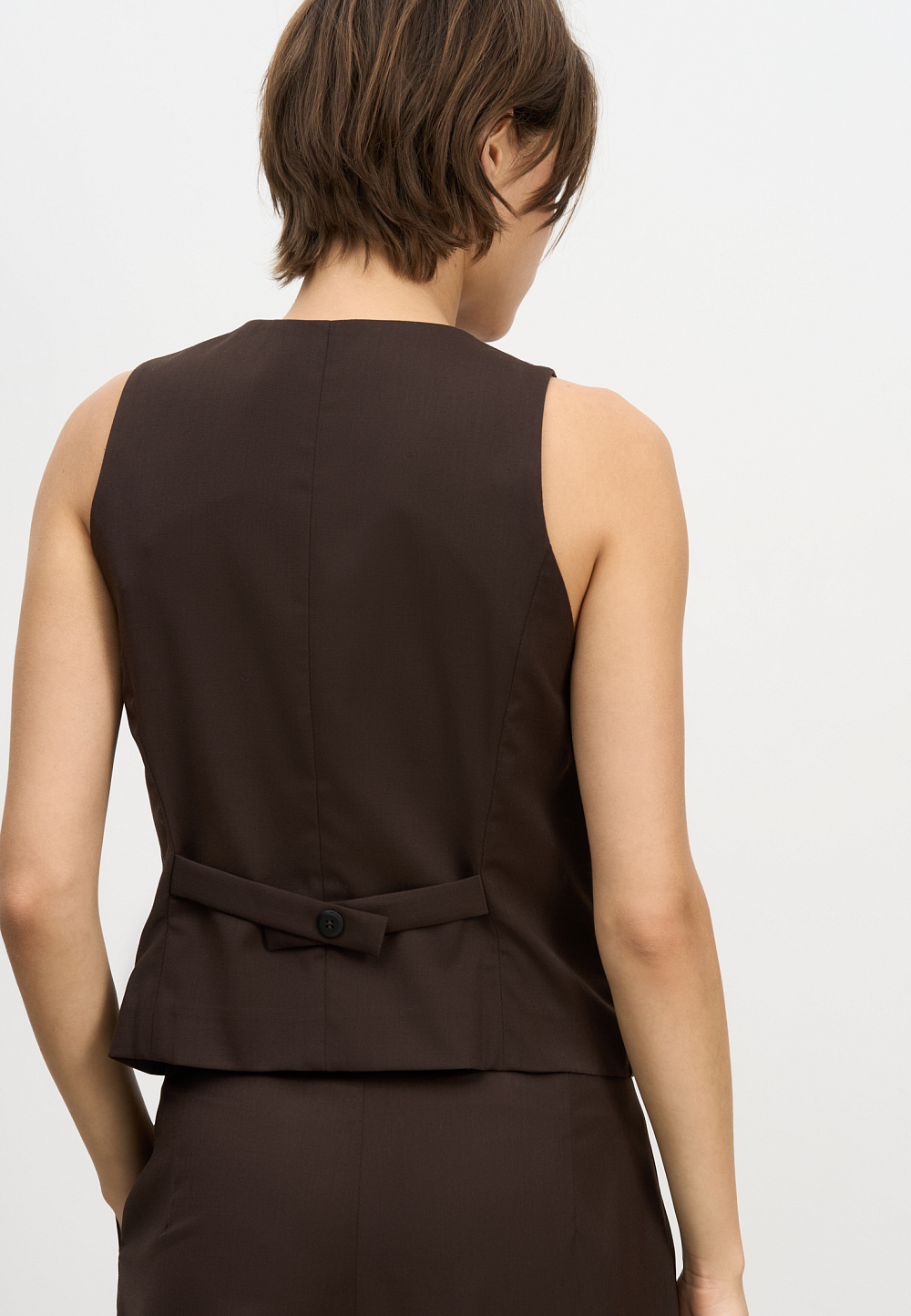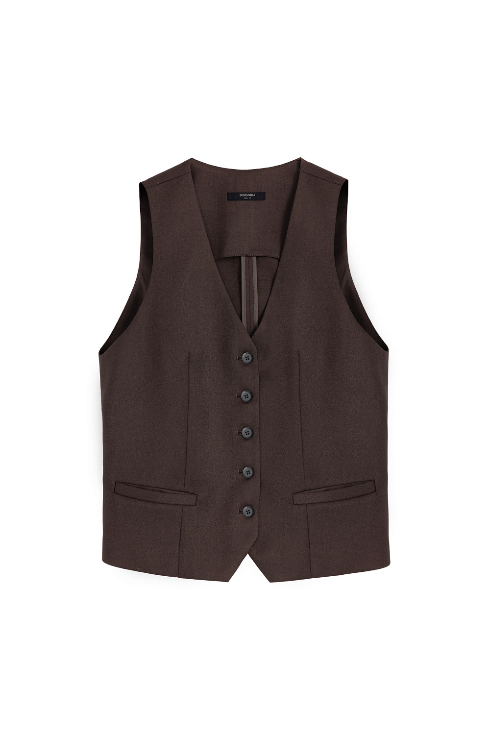 Classic vest with imitation pockets and v-neck. Button closure. No lining.