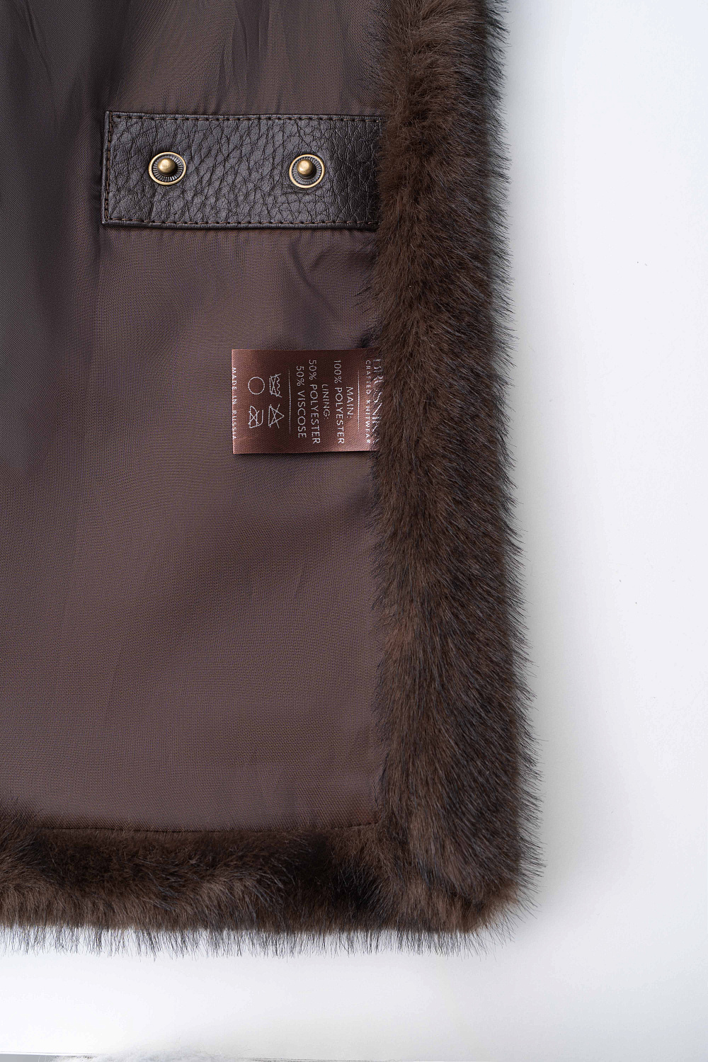 Eco-fur vest with stand-up collar. Side fastenings with buttons. The product is lined.