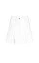100% cotton pleated denim skirt. Concealed zipper and button closure.
