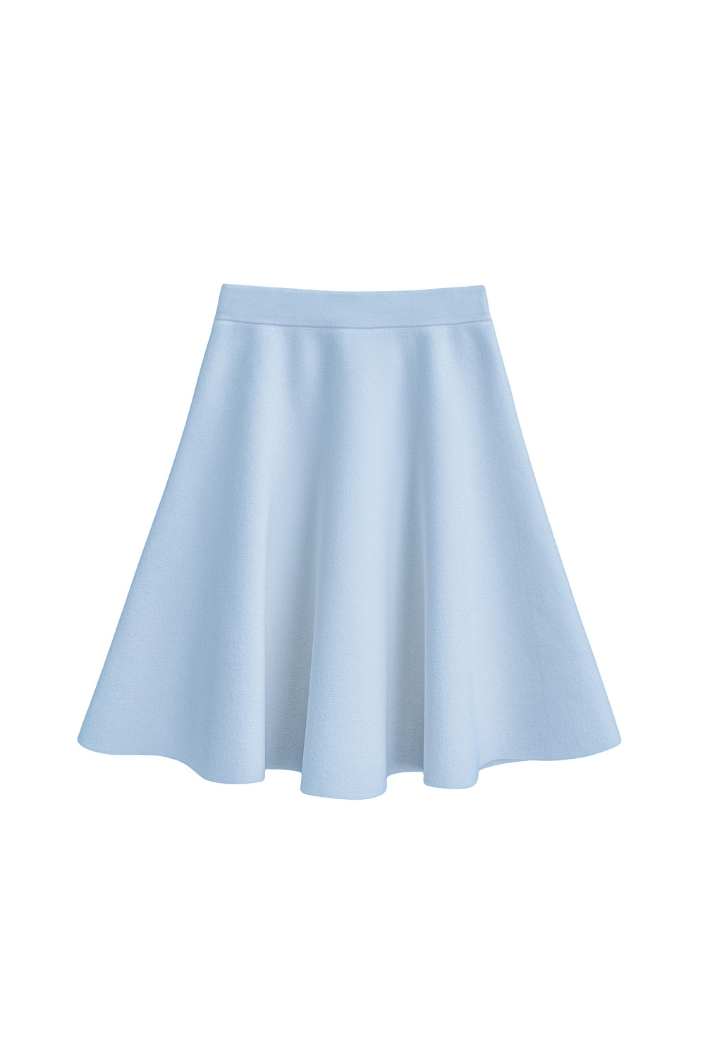 Knitted mini skirt made of viscose. A-line model with elastic waistband.