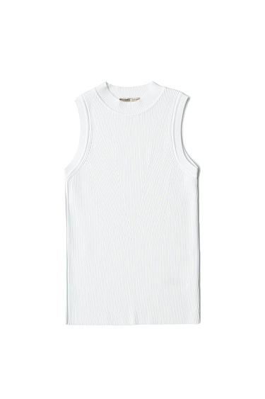 Knitted mini skirt made of viscose. A-line model with elastic waistband.
