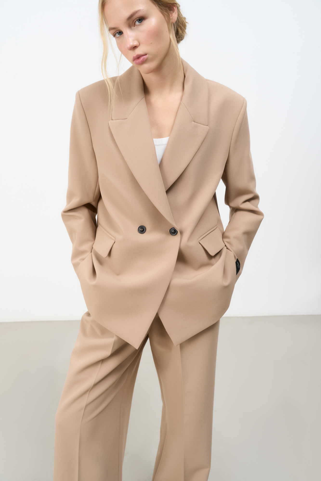 Basic blazer made of polyviscose fabric. Patch pockets, branded logo on the sleeve. Button closure.