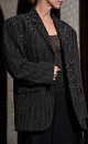 Single-breasted jacket made of wool, decorated with a rhinestone pattern. Straight fit model with narrow lapels, wide shoulders, side pockets with flaps and two button closure. The product is lined.