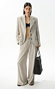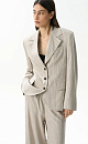 Classic striped jacket made of linen with the addition of viscose. The model has a straight silhouette, with an English turn-down collar, wide lapels and side pockets with flaps. Three button closure. The product is lined.