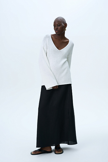 100% linen maxi skirt with slit