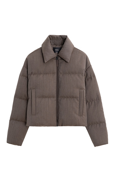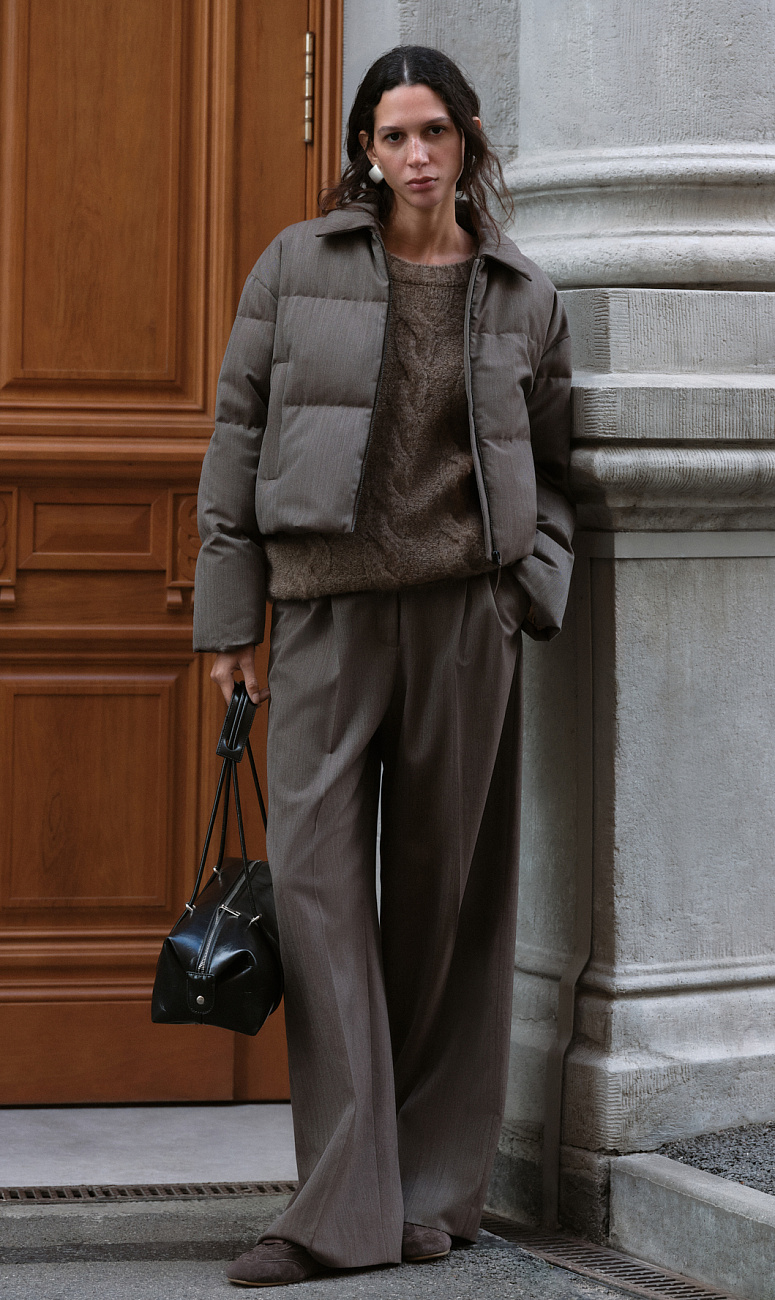 Products in the image : Trousers $235 , Jumper $203 , Down jacket $378 ,
