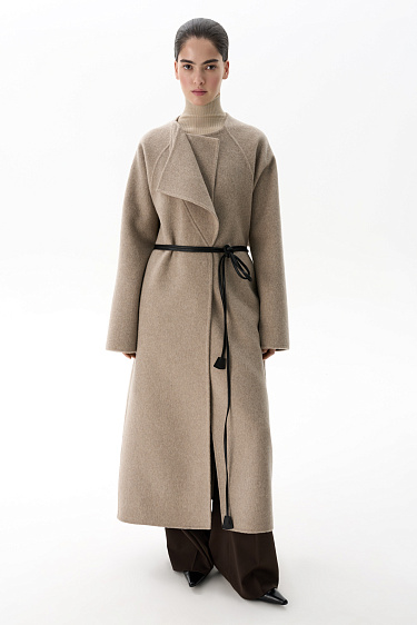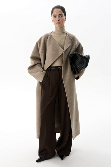 Wool coat with an asymmetrical lapel