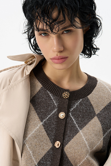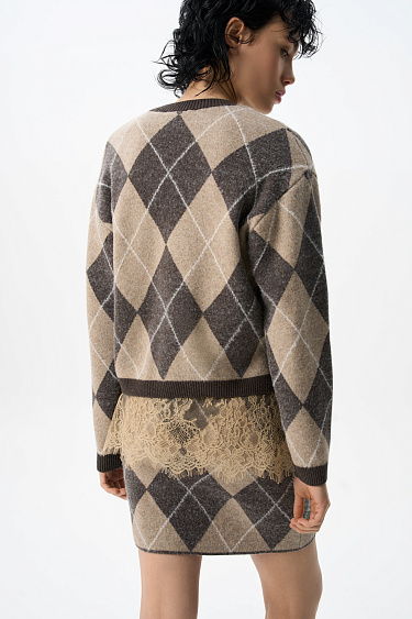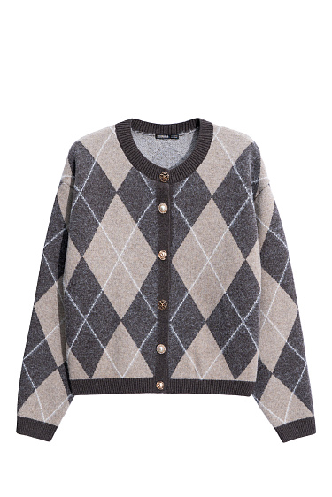 Cashmere cardigan with an Argyle pattern