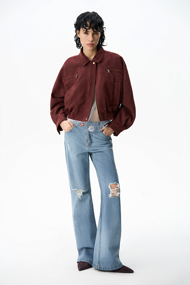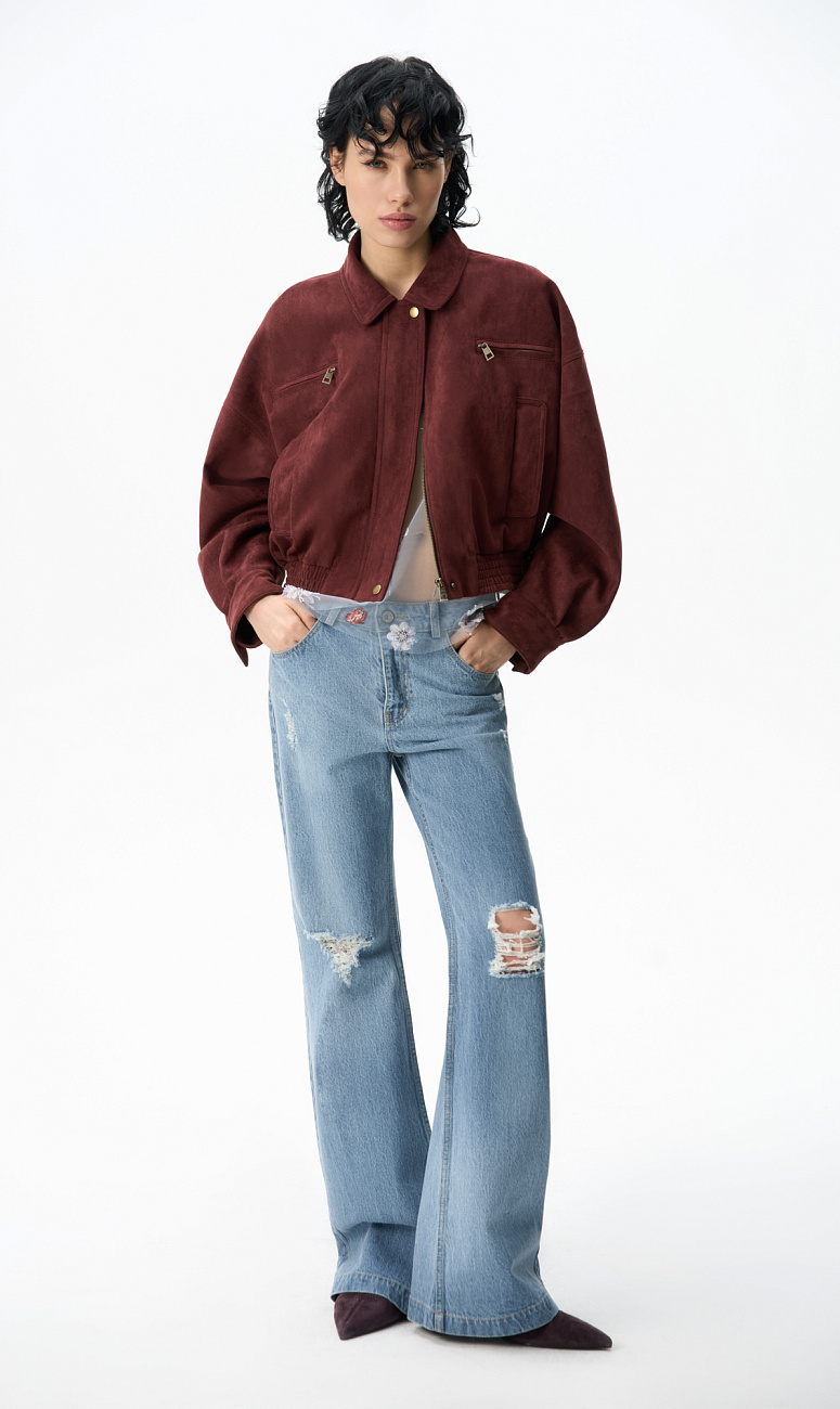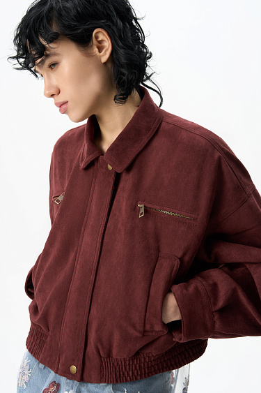 Suede bomber jacket with a turn-down collar